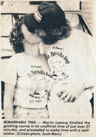 Martin Laessig, a local artist and sometime bartender, completed the run in a time that staggers the imagination. It also staggered Laessig a bit, as he came into the finish line at the Sandcastle Bar in 27:04.6 (unofficial).